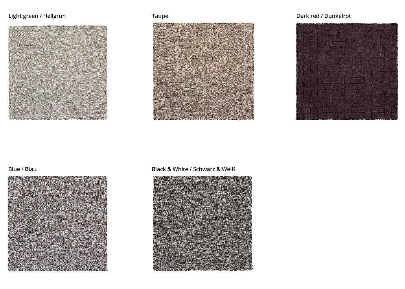 Handgeflochtene Teppiche aus der einzigartigen Waan Textilkollektion von Designerin Dienke Dekker. Das extravagante Design der Teppiche gelingt durch die Verbindung einzelner Wollfäden in kontrastierenden Farben, dadurch entsteht eine Abfolge von Knoten, die sich wiederum in ein feines Gitter einreihen. Die Teppiche der Kollektion sind in mehreren Grössen und fünf unterschiedlichen Farbvarianten erhältlich.